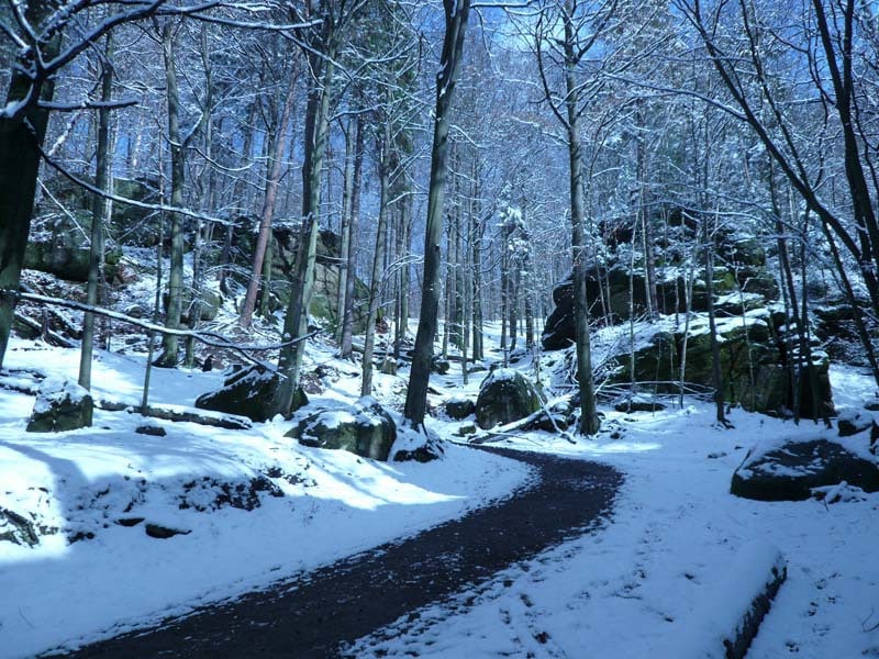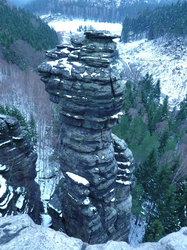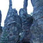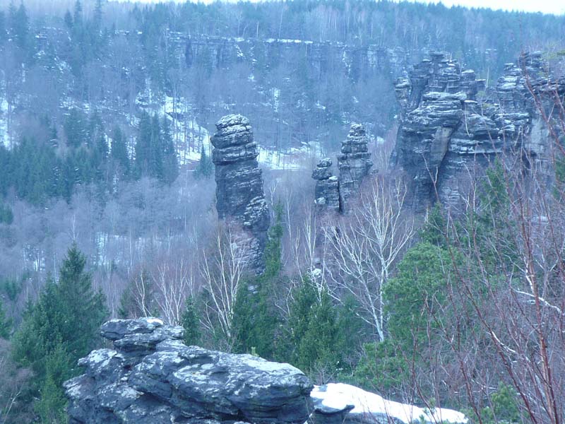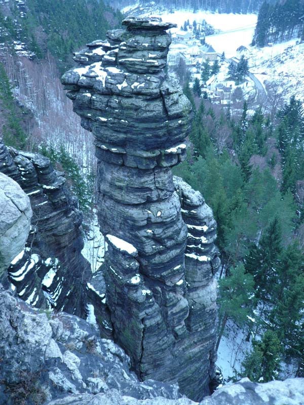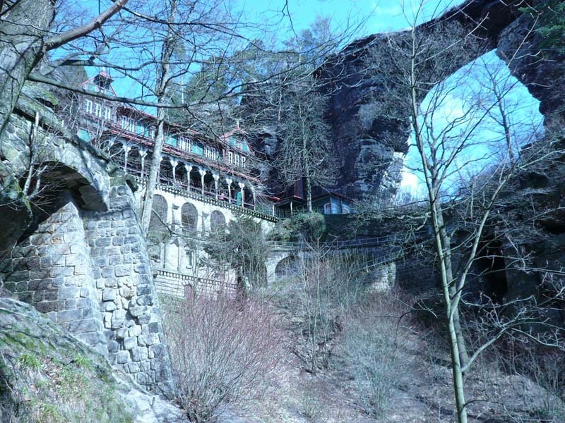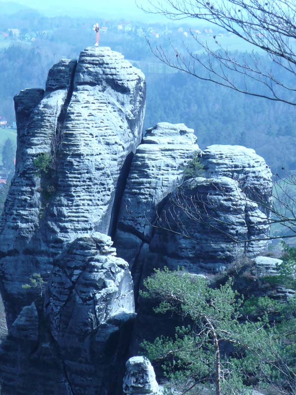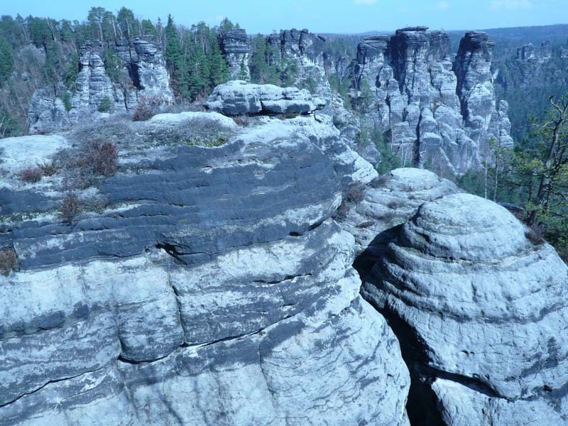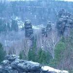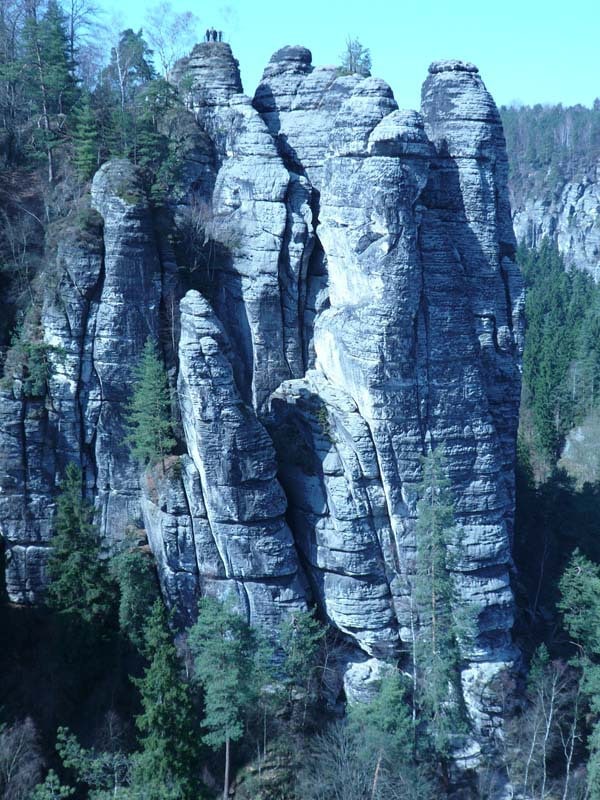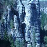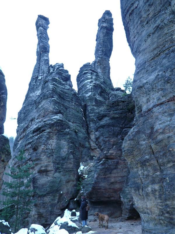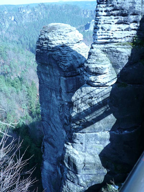 Osten 2009 haben wir uns die Sächsische Schweiz vorgenommen. Dazu haben wir uns eine Pension in der Nähe des Kurortes Rathen gemietet, und von da aus die Sächsische und die Böhmische Schweiz in Nordböhmen (Tschechien) mit unserem Hund Lea durchwandert. Obwohl es schon Ostern war, lag Schnee im Gebirge. Dennoch haben wir das zerklüftete Felsengebirge mit seinem außerordentlichen Formenreichtum auf engstem Raum genossen. Einmalig war der Panoramablick von der Bastei über das Elbtal und über das Elbsandsteingebirge. Die Bastei zählt zu den meistbesuchten Touristenattraktionen der Sächsischen Schweiz. Die Basteibrücke bei Rathen, die Herkulessäulen im Bielatal und die Sandstein-Felsbrücke Prebischtor in der Böhmischen Schweiz werden uns noch lange im Gedächtnis bleiben.