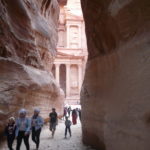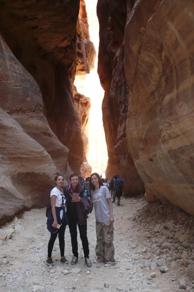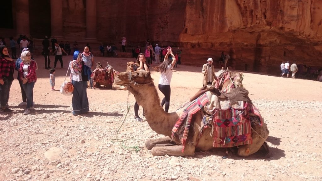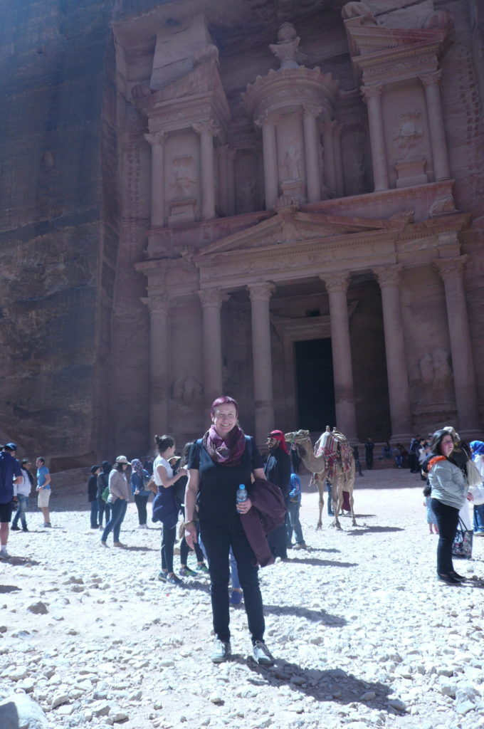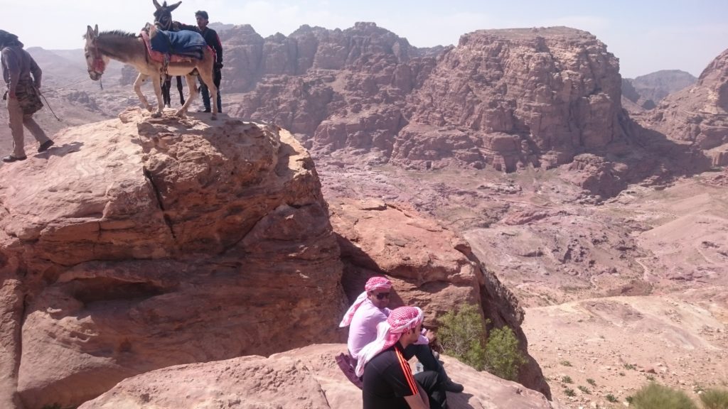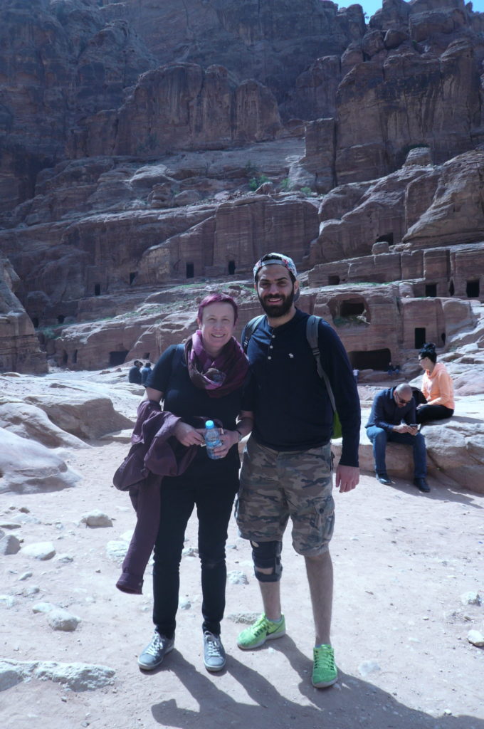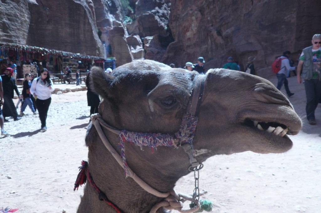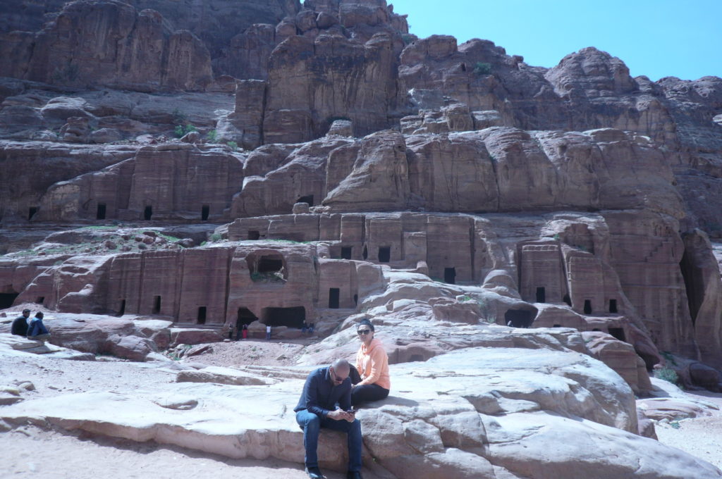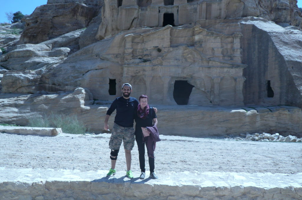 Unser Student hat mir auch einen Traum erfüllt – Petra. Es ist einfach unglaublich, was die Antike zu bieten hat. Nicht umsonst wurde Petra 2007 zu einem der sieben „neuen Weltwunder“ erklärt. Einst wurde sie von den Nabatäern erbaut, die vor über 2.200 Jahren dort lebten. In das Herz von Petra gelangt man durch eine spektakuläre 1.200 m lange, tiefe und enge Schlucht (Siq). Die Felswände sind bis zu 80 m hoch. Die Schlucht führt direkt zum sog. „Schatzhaus“ (Al-Khazneh). Das Bauwerk entstand im 1. Jahrhundert v. Chr. als Grabmal für einen nabatäischen König. Die Urne auf der Spitze des Gebäudes soll einst wertvolle Schätze behütet haben. Nicht weit davon ist das Theater, das später von den Römern auf 7.000 Plätze erweitert wurde. Einen sehr schönen Blick über Petra erhält man vom sog. „hohen Opferplatz“. Der Weg dahin ist steinig und schwer, aber auf dem Gipfel angekommen, verschlägt es einem die Sprache. Wer keine Lust zum Laufen hat, kann auf einem Esel oder einem Kamel reiten. Angebote gibt es genug und die dort ansässigen Beduinen sind auch schwer bemüht, einem den Aufenthalt in Petra noch angenehmer zu gestalten.