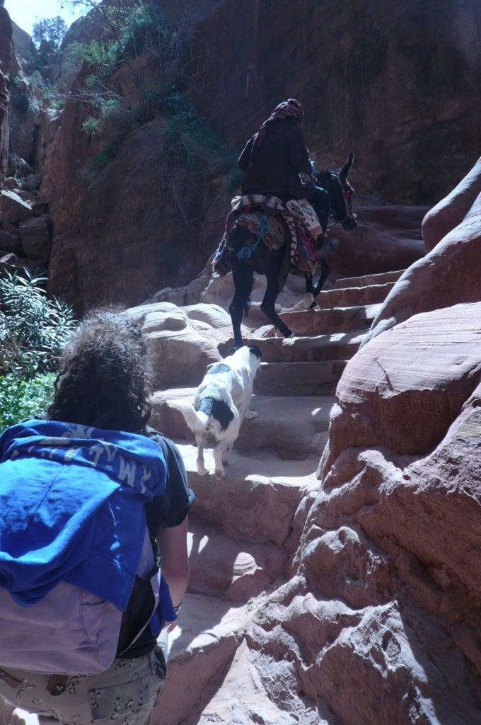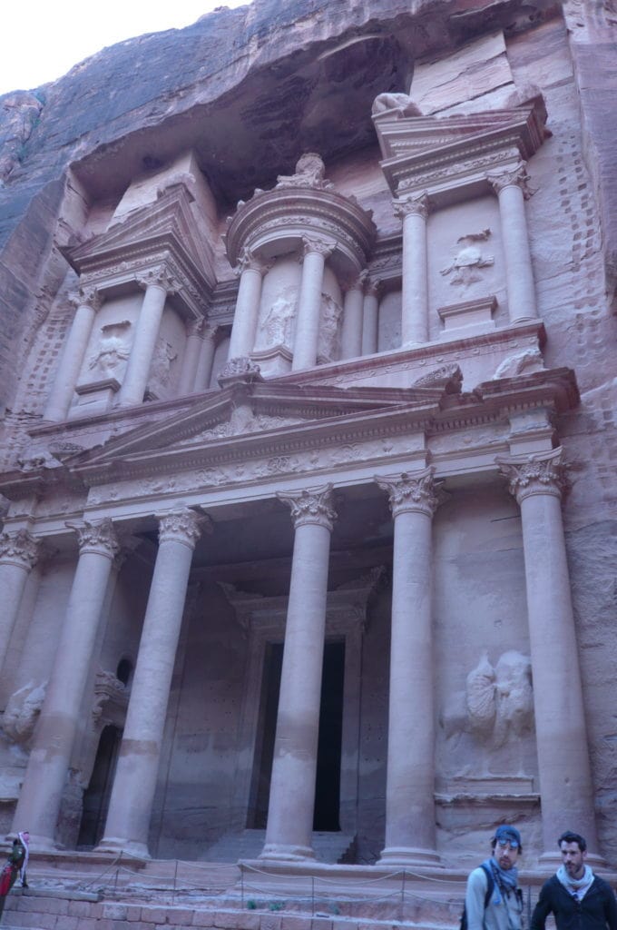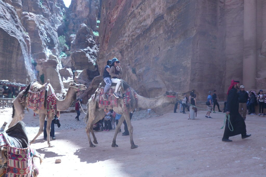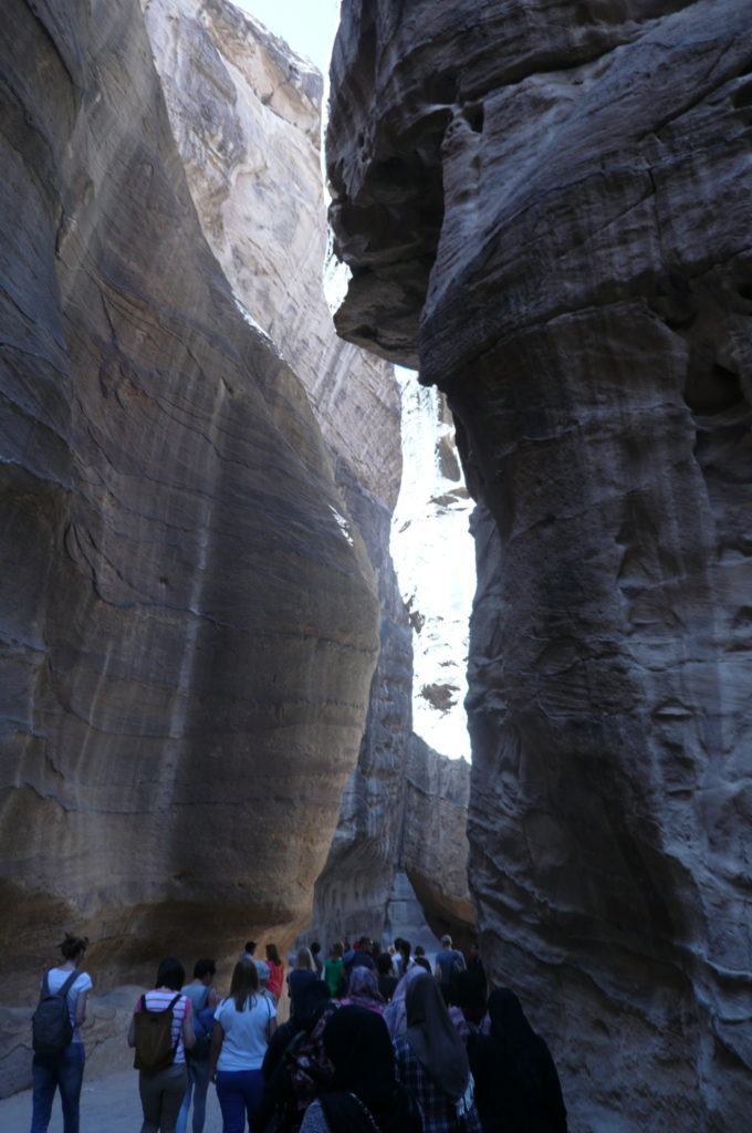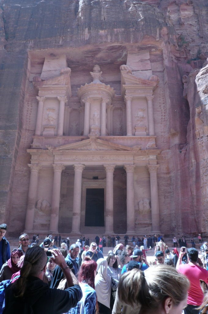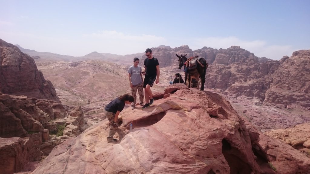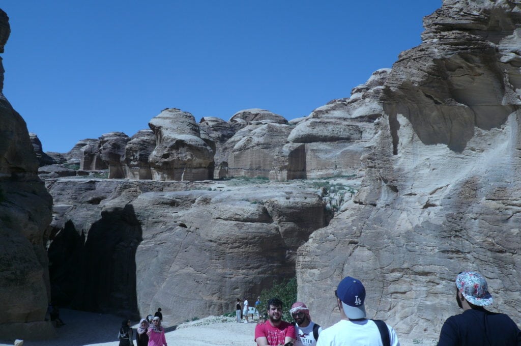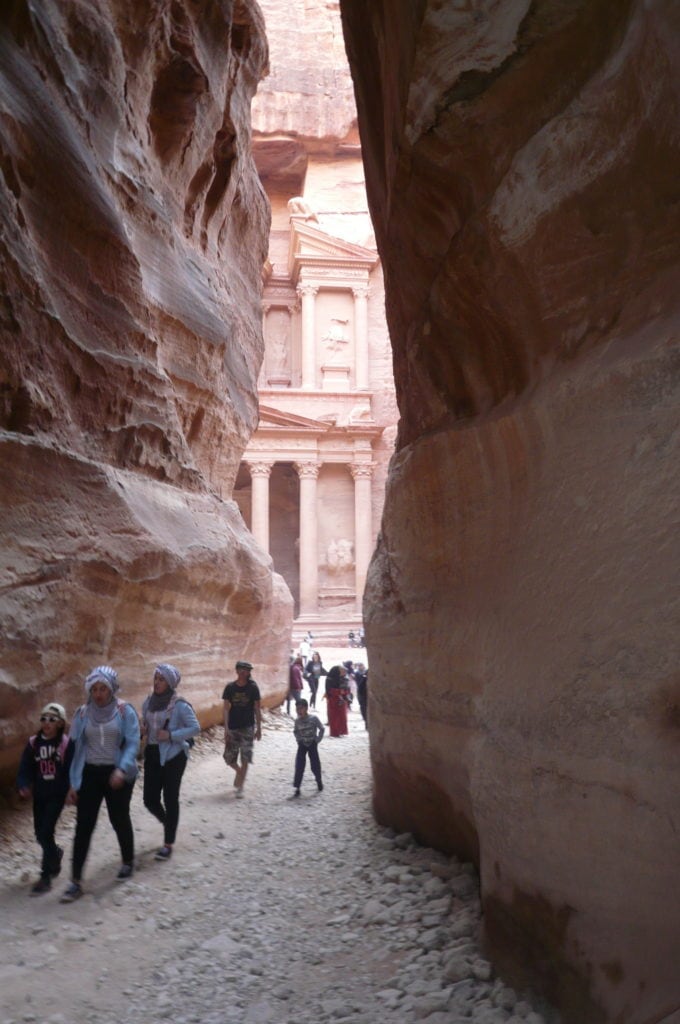 Unser Student hat mir auch einen Traum erfüllt – Petra. Es ist einfach unglaublich, was die Antike zu bieten hat. Nicht umsonst wurde Petra 2007 zu einem der sieben „neuen Weltwunder“ erklärt. Einst wurde sie von den Nabatäern erbaut, die vor über 2.200 Jahren dort lebten. In das Herz von Petra gelangt man durch eine spektakuläre 1.200 m lange, tiefe und enge Schlucht (Siq). Die Felswände sind bis zu 80 m hoch. Die Schlucht führt direkt zum sog. „Schatzhaus“ (Al-Khazneh). Das Bauwerk entstand im 1. Jahrhundert v. Chr. als Grabmal für einen nabatäischen König. Die Urne auf der Spitze des Gebäudes soll einst wertvolle Schätze behütet haben. Nicht weit davon ist das Theater, das später von den Römern auf 7.000 Plätze erweitert wurde. Einen sehr schönen Blick über Petra erhält man vom sog. „hohen Opferplatz“. Der Weg dahin ist steinig und schwer, aber auf dem Gipfel angekommen, verschlägt es einem die Sprache. Wer keine Lust zum Laufen hat, kann auf einem Esel oder einem Kamel reiten. Angebote gibt es genug und die dort ansässigen Beduinen sind auch schwer bemüht, einem den Aufenthalt in Petra noch angenehmer zu gestalten.