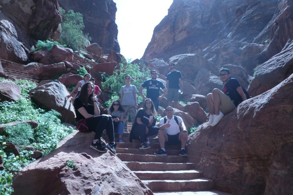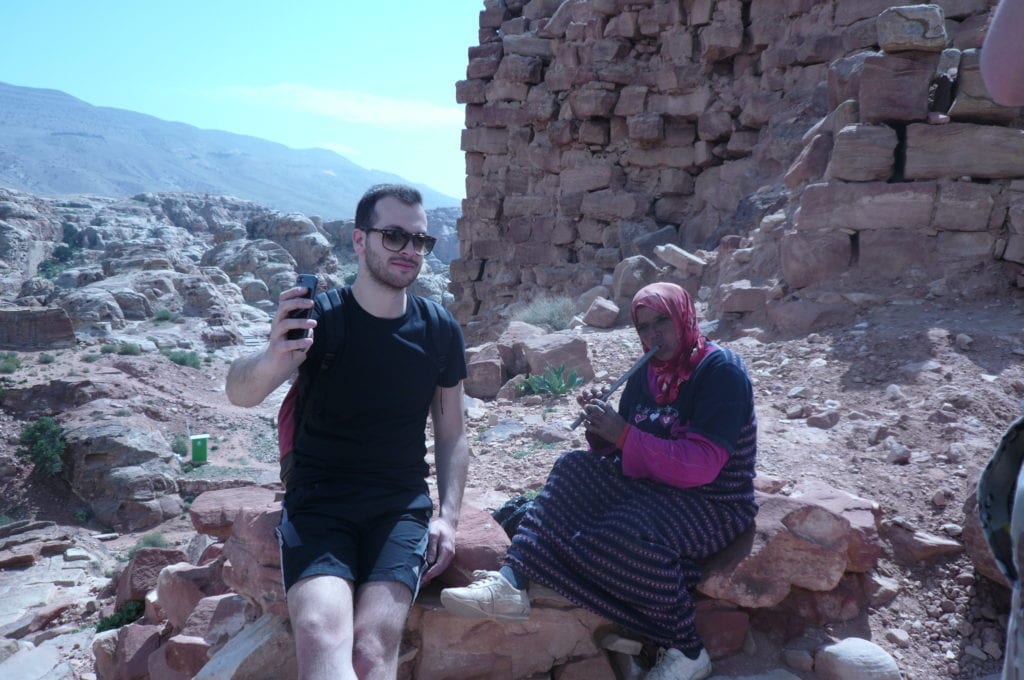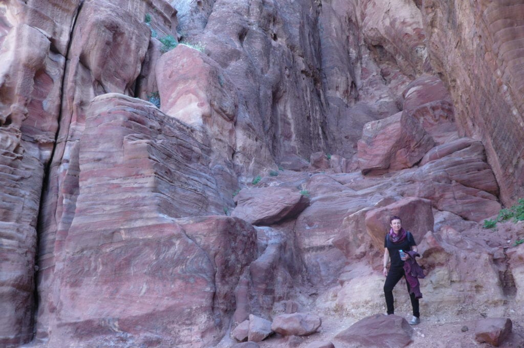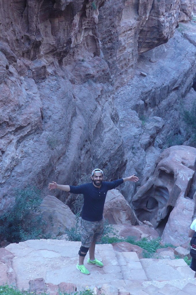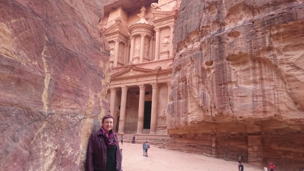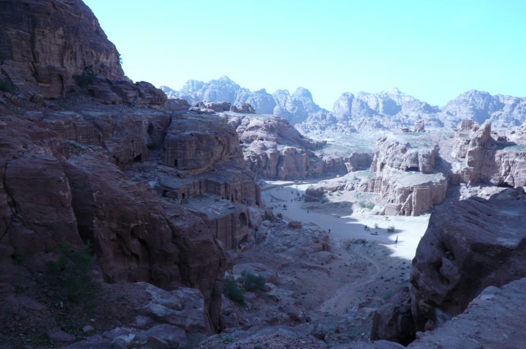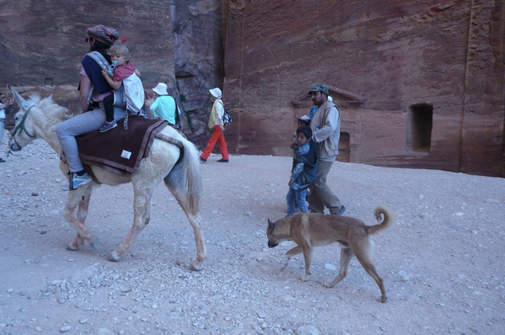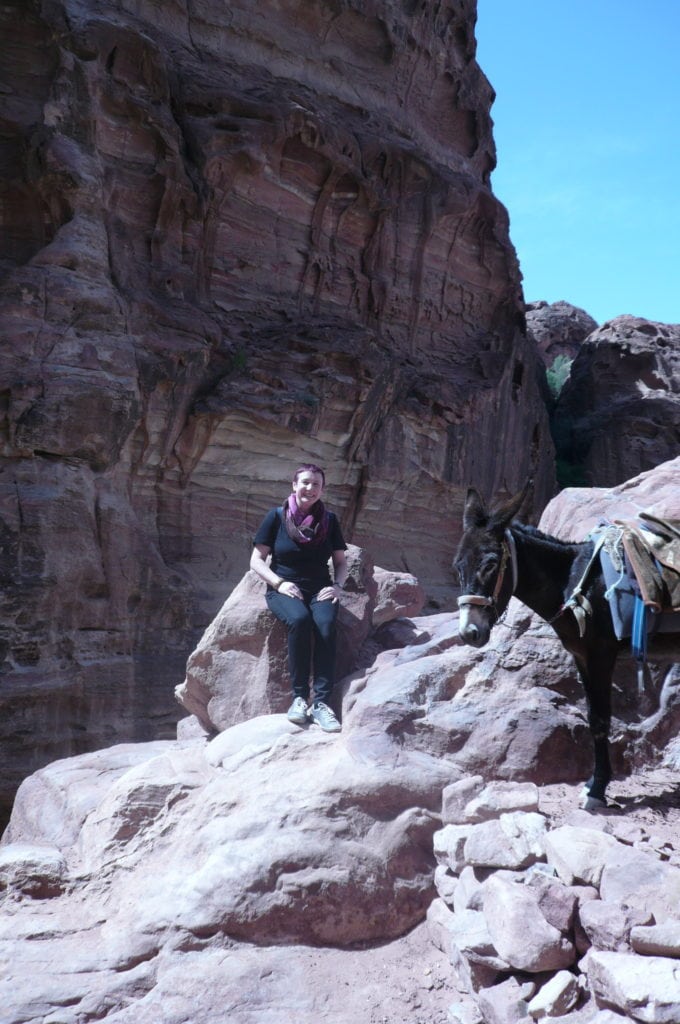 Unser Student hat mir auch einen Traum erfüllt – Petra. Es ist einfach unglaublich, was die Antike zu bieten hat. Nicht umsonst wurde Petra 2007 zu einem der sieben „neuen Weltwunder“ erklärt. Einst wurde sie von den Nabatäern erbaut, die vor über 2.200 Jahren dort lebten. In das Herz von Petra gelangt man durch eine spektakuläre 1.200 m lange, tiefe und enge Schlucht (Siq). Die Felswände sind bis zu 80 m hoch. Die Schlucht führt direkt zum sog. „Schatzhaus“ (Al-Khazneh). Das Bauwerk entstand im 1. Jahrhundert v. Chr. als Grabmal für einen nabatäischen König. Die Urne auf der Spitze des Gebäudes soll einst wertvolle Schätze behütet haben. Nicht weit davon ist das Theater, das später von den Römern auf 7.000 Plätze erweitert wurde. Einen sehr schönen Blick über Petra erhält man vom sog. „hohen Opferplatz“. Der Weg dahin ist steinig und schwer, aber auf dem Gipfel angekommen, verschlägt es einem die Sprache. Wer keine Lust zum Laufen hat, kann auf einem Esel oder einem Kamel reiten. Angebote gibt es genug und die dort ansässigen Beduinen sind auch schwer bemüht, einem den Aufenthalt in Petra noch angenehmer zu gestalten.